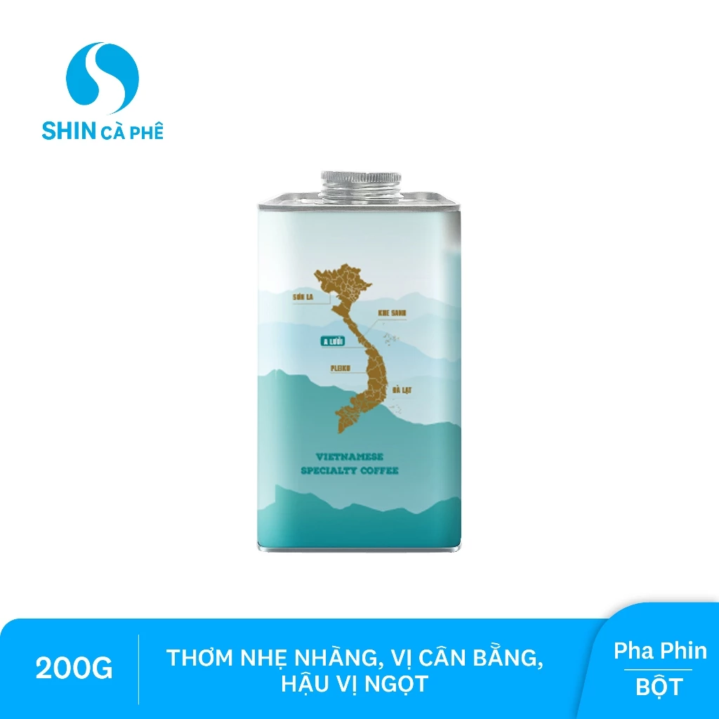 Bold and aromatic blend from A Luoi highlands. Perfectly ground for traditional Vietnamese phin brewing. Deep, earthy flavor. 200g by Shin Coffee