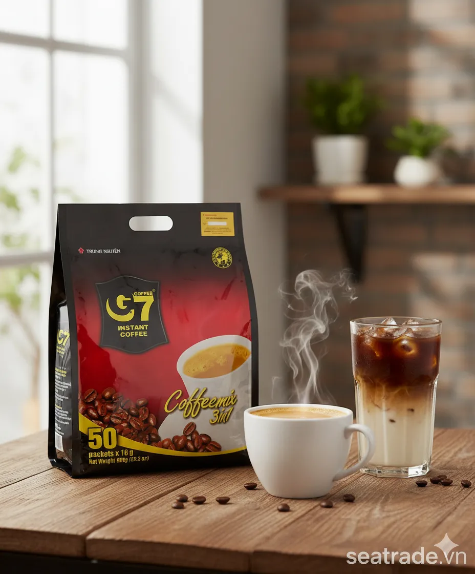 Trung Nguyen G7 3-in-1 Instantkaffee – 50 Beutel Bringt die authentische Stärke und das Aroma vietnamesischen Kaffees in Sekundenschnelle in Ihre Tasse. Kräftig, cremig und perfekt ausbalanciert – die ideale Kombination aus Qualität und Komfort für hektische Morgen, Reisen oder den täglichen Genuss. Jeder Schluck verbindet Sie mit dem Herzen der vietnamesischen Kaffeekultur.
