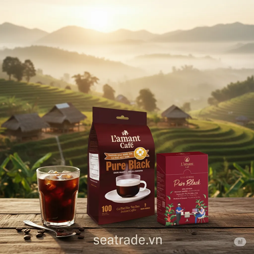 Découvrez la véritable essence du café vietnamien avec le café instantané Lamant Pure Black — un mélange instantané haut de gamme et sans compromis, composé à 100% de grains purs de Robusta et d'Arabica, sans sucre, sans crème et sans additifs.