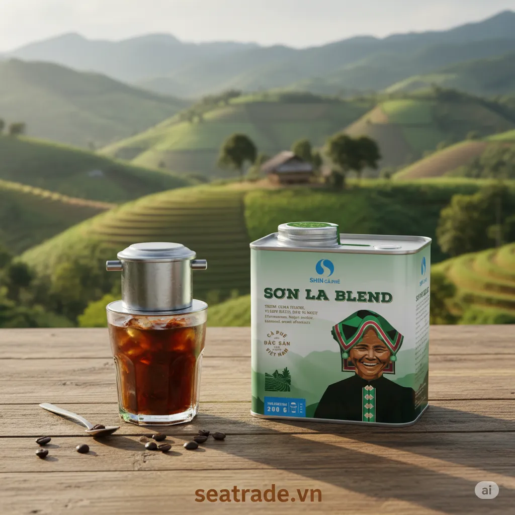 ソンラ ブレンド フィンは、涼しい気候と豊かな農業の伝統で知られる山岳地帯のソンラ地域で栽培された豆から作られた、ベトナム産の高級挽きコーヒーです。